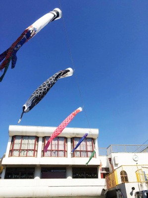 初音劔志塾では、5月5日の子供の日に合わせてこいのぼりを飾りました。